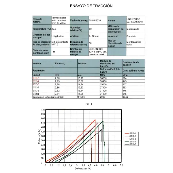 Estos ensayos se realizan en probetas con diferentes configuraciones de Fibras y Resinas o, cuando el cliente o el producto lo requieren, en perfiles en su posición de trabajo.