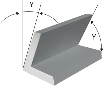 V < 1,0° por metro máximo para espesores ≥ 5 mm